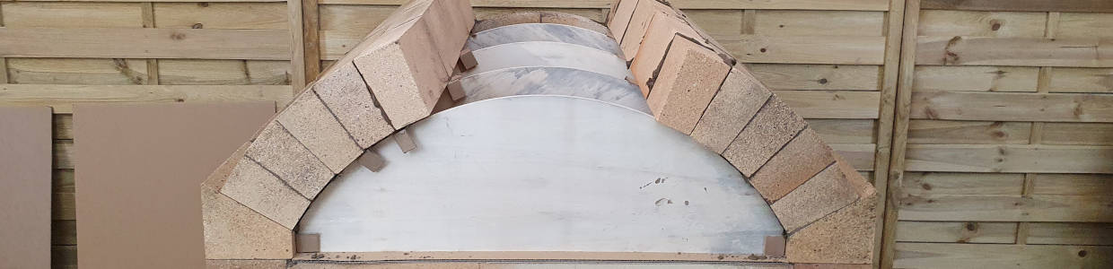 Ein Flachgewölbe mit 500 mm Breite und einem Radius von ca. 450 mm wird aus diesen Schamottewölbern errichtet: