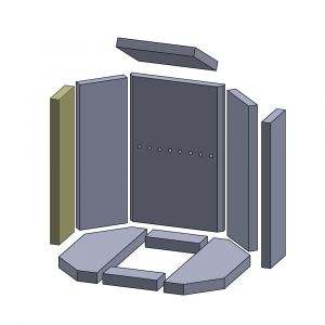 Tampere 8 Typ 4647-8 C (Es gibt verschiedene Auskleidungen für dieses Modell. Bitte orientieren Sie sich an den Maßen: Bodenstein vorne 154x60mm, Bodenstein links 140x193/375mm, gelochter Rückwandstein 240/264x410mm, Wandstein links vorne 112x410mm)