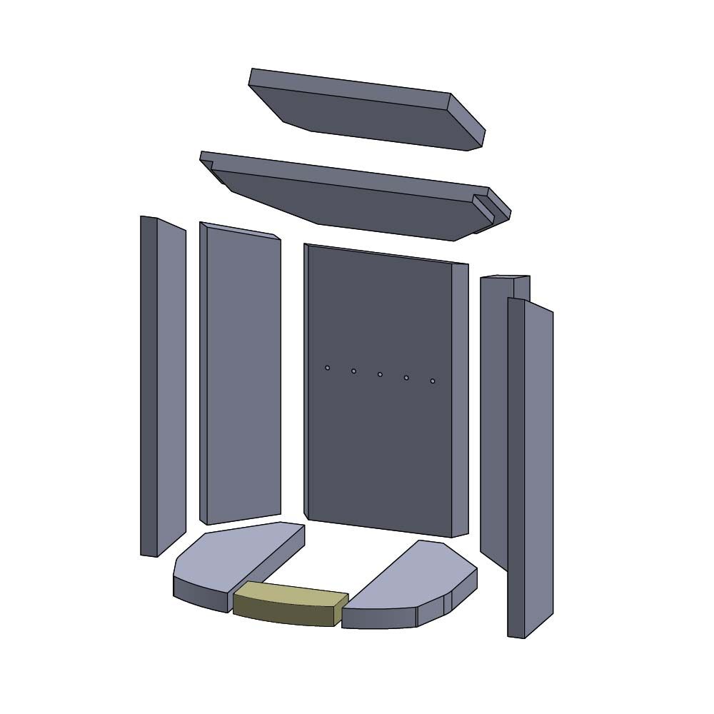 Arktis 6C (Es gibt verschiedene Auskleidungen für dieses Modell. Bitte orientieren Sie sich an dem Maß des vorderen Bodensteins 153 x 71 x 30 mm. Erfahrungsgemäß wurde diese Brennraumauskleidung in Modellen mit einer 2-Punkt Verriegelung verbaut)