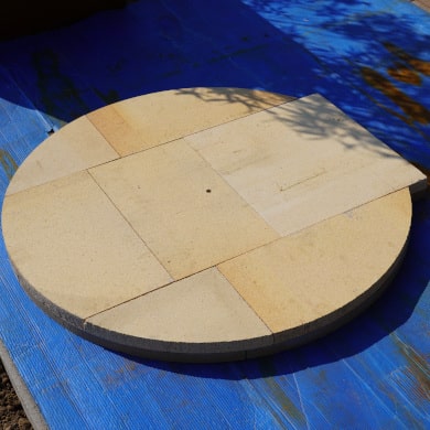 Kasi-Platten und Schamotteplatten auf das vorbereitete Fundament legen