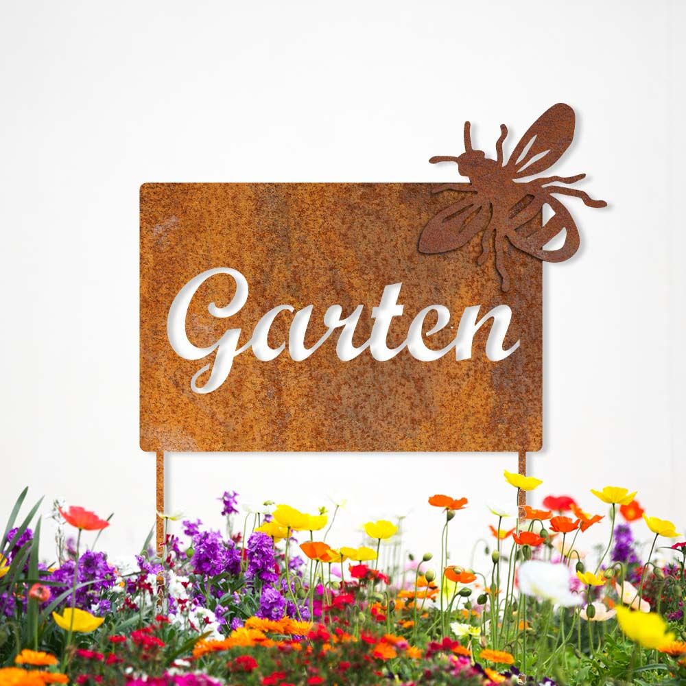 Dieses Edelrostschild ist die ideale Ergänzung für Garten, Imkerei oder für Bauernmärkte. Unsere Schilder aus Cortenstahl werden liebevoll und in Handarbeit an unserem Standort in Deutschland designt & gefertigt.