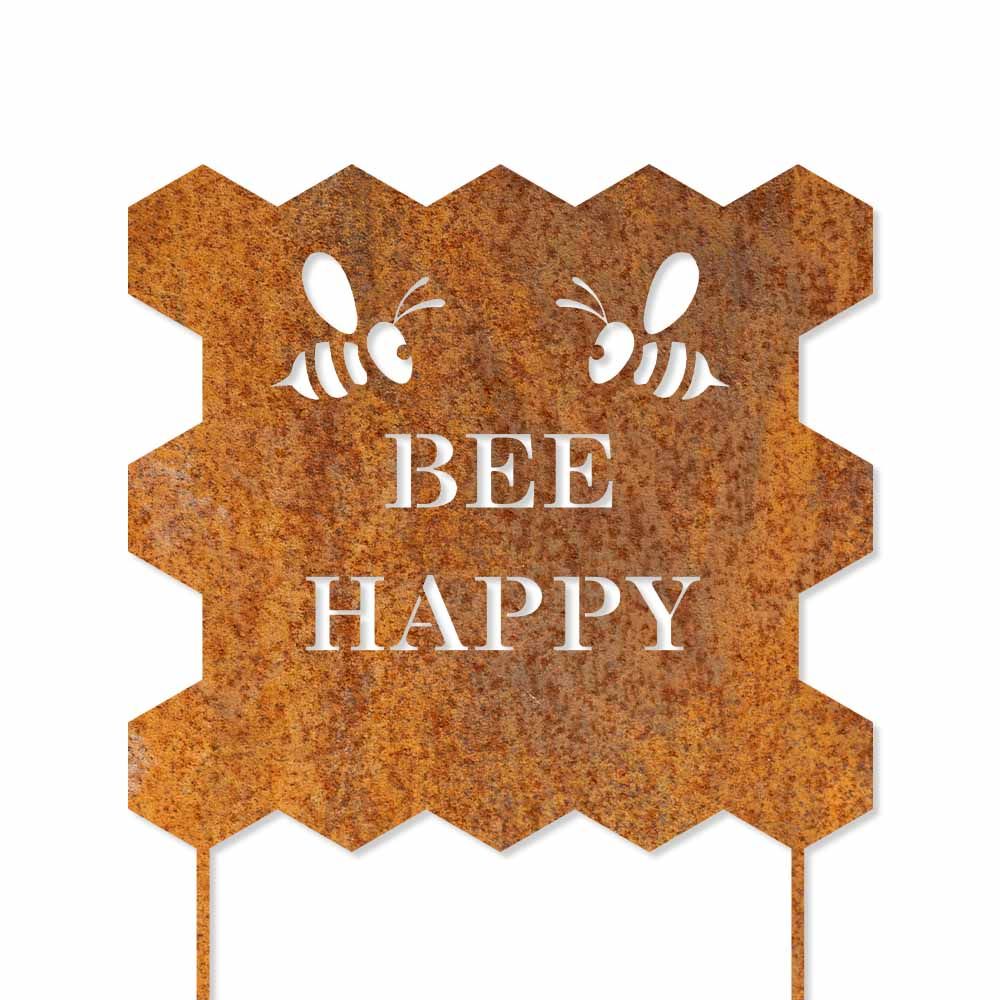 Edelrostschild mit Stecker - Bee Happy