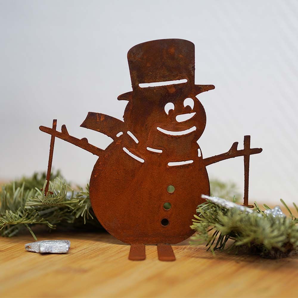 Schneemann mit Skiern von 15 cm bis 30 cm Höhe in Edelrost