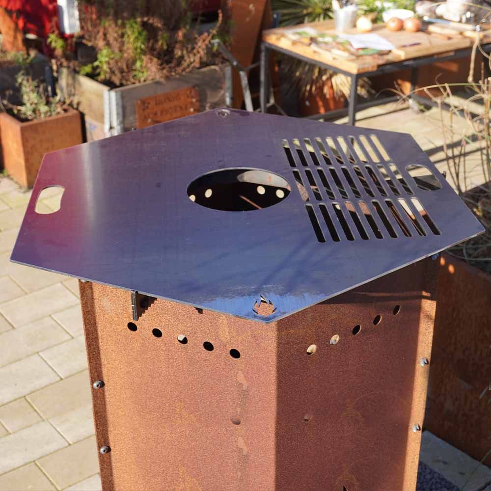 Feuerplatte / Grillplatte 6-eckig mit integriertem Rost Ø 60 cm Design 3