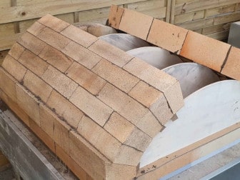 Ein Flachgewölbe mit 500 mm Breite und einem Radius von ca. 450 mm wird aus diesen Schamottewölbern errichtet: