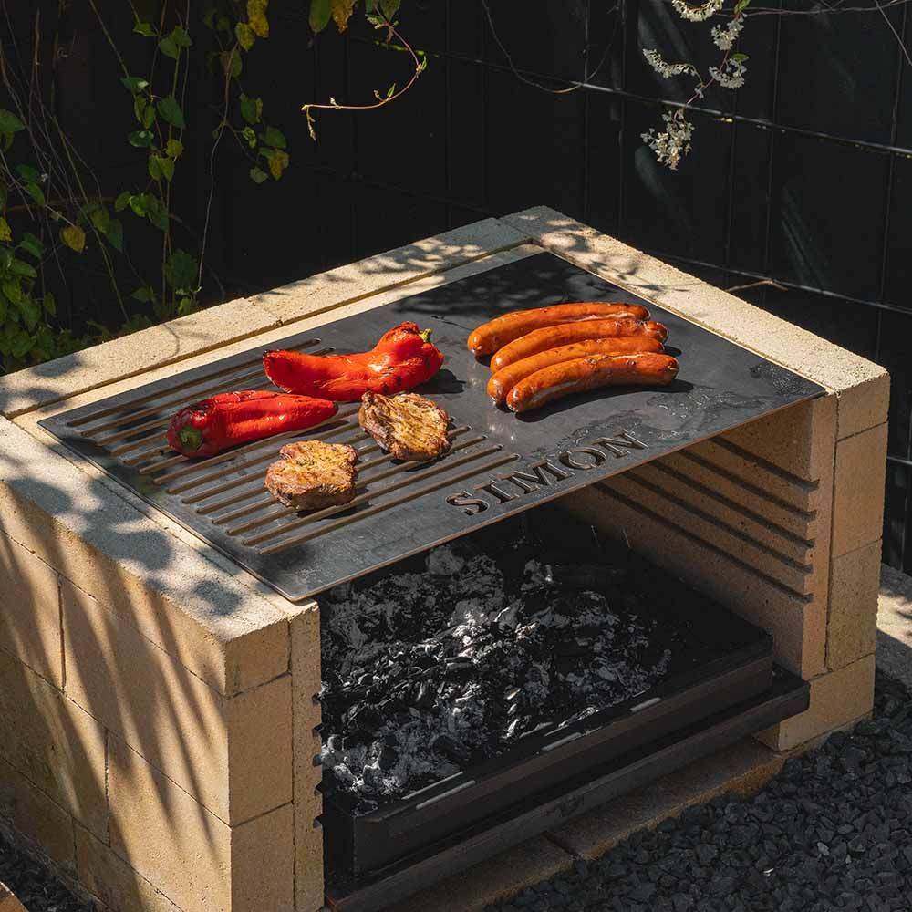 Verleihen Sie ihrem Grill eine persönliche Note mit unserer hochwertigen Grillrost-Kombination mit individuellem Wunschnamen! Sie können auf dem integrierten Rost Steaks und Würstchen grillen und gleichzeitig, auf der Platte, z. B. Pfannkuchen oder Rühreier zubereiten. Ihrer Kreativität sind keine Grenzen gesetzt.