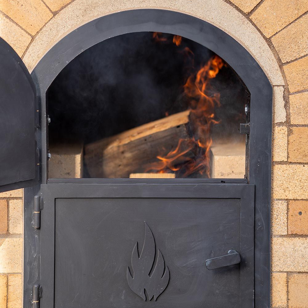 Sie können die Ofentür Caserta in unseren Pizzaofen Bausätzen oder in Ihr eigenes Ofenprojekt einbauen. Unsere Ofentüren "PUR Schamotte" haben standardmäßig den Türanschlag auf der linken Seite. Alternativ können wir den Türanschlag auch auf der rechten Seite anfertigen. Sie können die Seite des Türanschlags kostenlos auswählen. Die beiden Türen können unabhängig voneinander geöffnet und geschlossen werden.