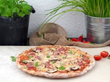 Auch unsere Pizza Rustika kommt ganz ohne Tomatensoße aus und verwendet stattdessen Kräuterfrischkäse als cremige Grundlage für den Belag. Die Frühlingszwiebeln und Champignons verleihen der Pizza einen frischen und leichten Geschmack. Durch den Speck schmeckt sie aber herrlich würzig und rustikal. Hier erfahren Sie, wie Sie unsere Steinofen Pizza Rustika auf dem Pizzastein backen.